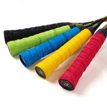 第一步 將吸汗帶的細(xì)端(開始端)按在拍柄底蓋的側(cè)面。一般吸汗帶的開始端會(huì)附有雙面膠貼。將吸汗帶的那端在拍柄末端固定。